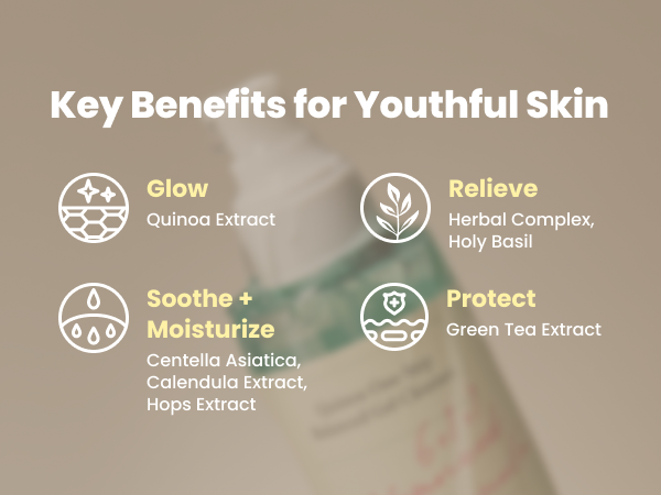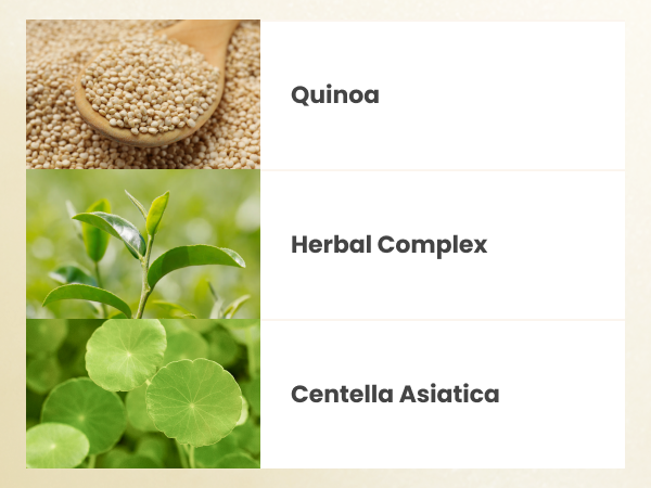 Water, Decyl Glucoside, Sodium Cocoyl Glutamate, Chenopodium Quinoa Seed Extract, Glycerin, Sodium Lauroyl Glutamate, Betaine, Glycine Soja (Soybean Oil),Melaleuca Alternifolia (Tea Tree) Extract, Chlorphenesin, Hydroxyacetophenone, Ethylhexylglycerin, Camellia Sinensis Leaf Extract, Humulus Lupulus (Hops) Extract, Ocimum Tenuiflorum Extract, Centella Asiatica Extract, Calendula Officinalis Flower Extract, Prunus Amygdalus Dulcis (Sweet Almond) Fruit Extract, Citric Acid, Geranium Maculatum Oil, Allantoin