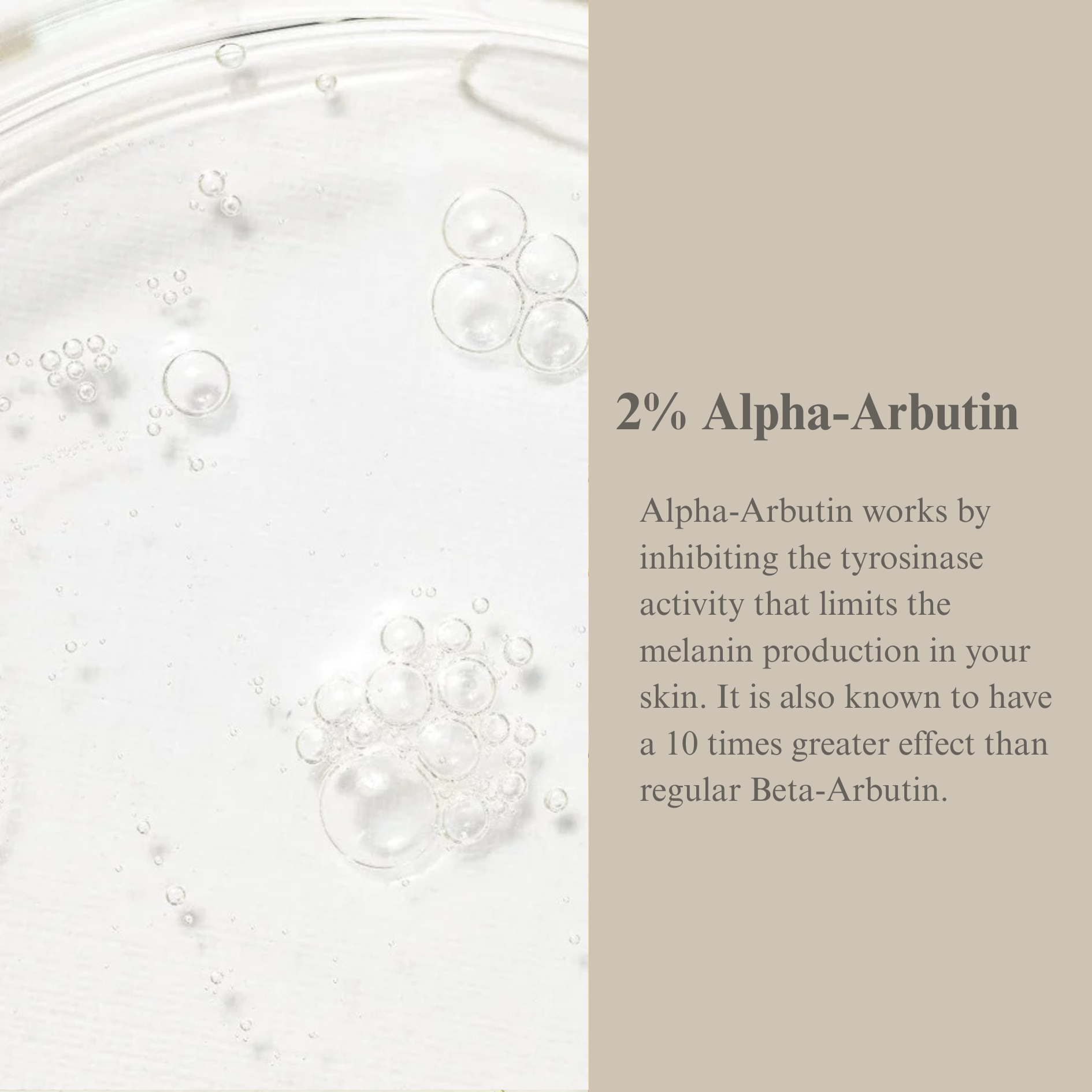 ✔ Alpha-Arbutin effectively suppresses Melanin formation and improves pigmented skin like freckles for bright, clear complexion.