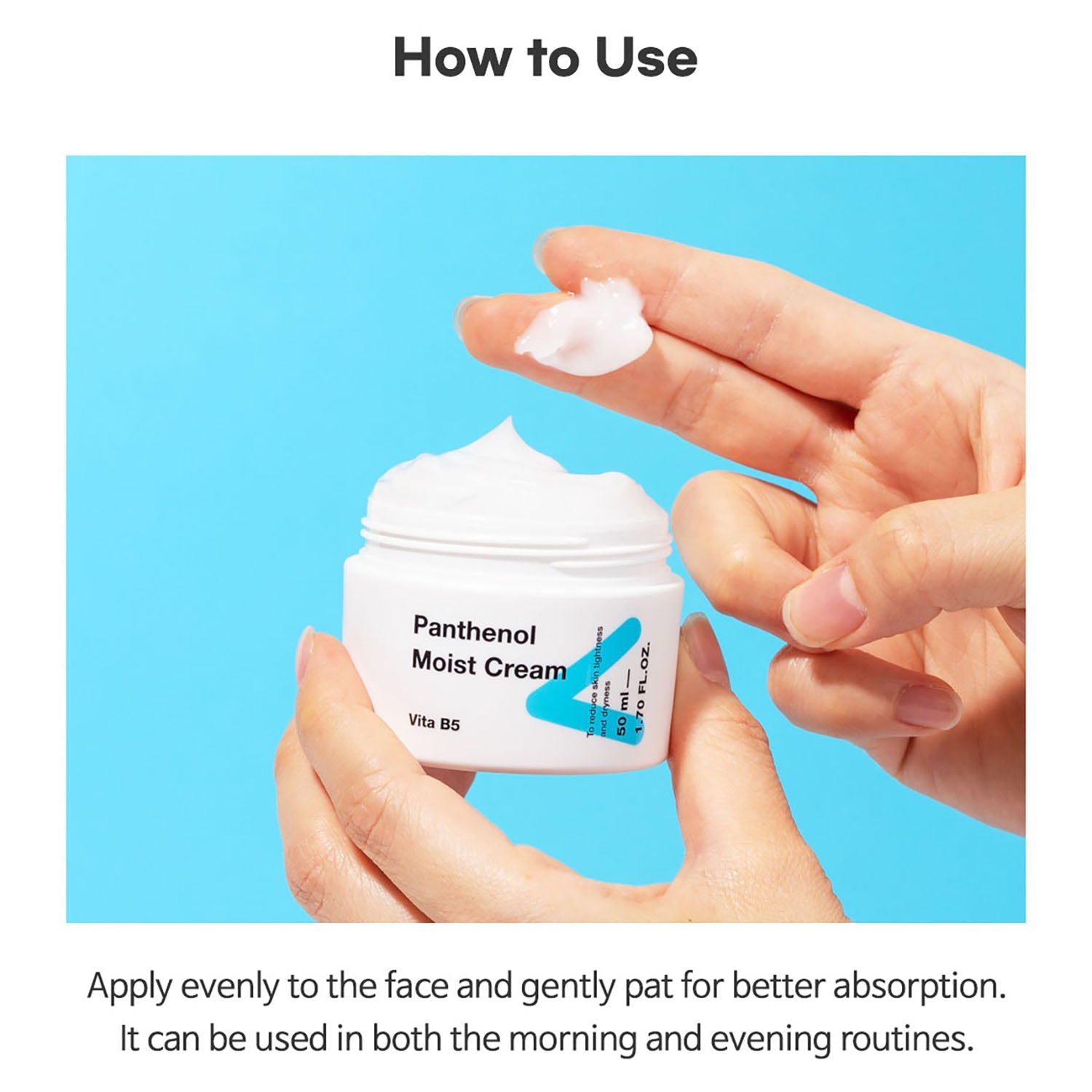 TIA'M Panthenol Moist Cream is a soothing, hydrating moisturizer formulated with panthenol (provitamin B5) to deeply nourish and calm the skin. Its lightweight texture absorbs quickly, providing long-lasting moisture without greasiness, making it ideal for sensitive and dry skin. The cream helps to strengthen the skin barrier, reduce irritation, and improve overall skin texture for a healthier, more balanced complexion.